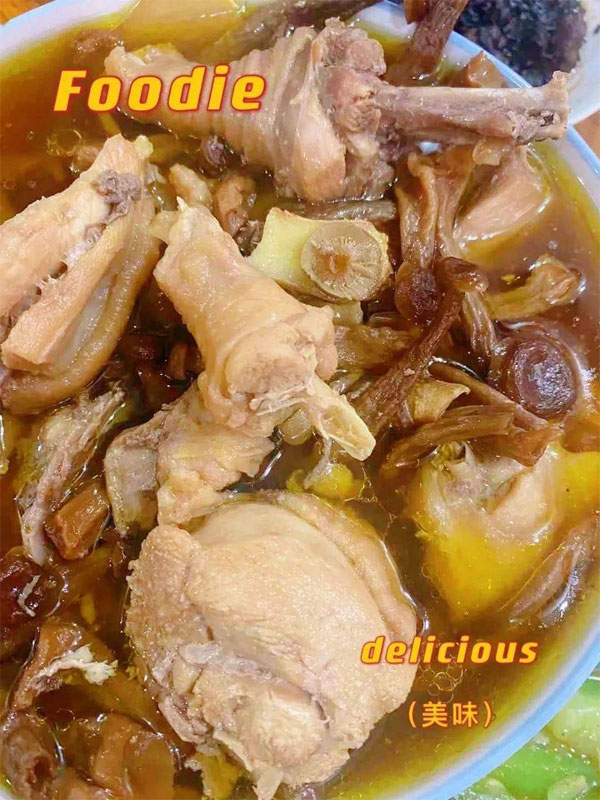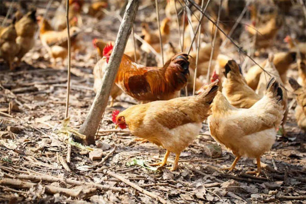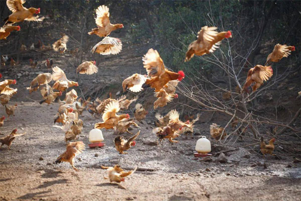 大多数时候,鸡都是自己在林子里找食吃,鸡是杂食动物,嫩草、小虫子、散落在地上的草籽都往嘴里啄,偶尔地也喂食五谷、玉米、豆粕麦麸、高粱给它吃,有时候还会添加少许大蒜,提升土鸡抵抗力效果,预防疫情。
