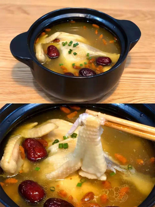 养了快两年的老母鸡,鸡汤香气非常的浓郁,鸡油也非常多,有时候鸡肚子里还有很多未成形的“蛋子”,熬过的汤再好喝不过了。